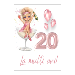 Felicitare 13x18cm cu plic, aniversare 20 ani