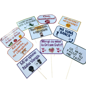 Comandă acum setul de propsuri cu mesaje personalizate și adu un plus de originalitate și veselie evenimentului tău! După plasarea comenzii, te vom contacta pentru a discuta toate detaliile personalizării.