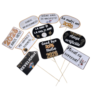 Descoperă colecția noastră de propsuri pentru fotografii cu mesaje amuzante. Oferim o gamă variată de accesorii de petrecere care aduc zâmbetul pe buze și creează momente memorabile la orice eveniment.